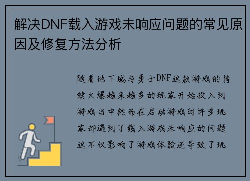 解决DNF载入游戏未响应问题的常见原因及修复方法分析
