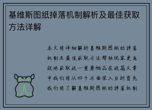 基维斯图纸掉落机制解析及最佳获取方法详解
